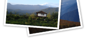 مساحت باغ حدود هفت هزار متر مربع است و در داخل باغ حدود 130 نهال و درخت مرکبات از انواع مختلف وجود دارند. علاوه بر آن خرمالو و ازگیل ژاپنی، سیب و به جنگلی و چند درخت جنگلی موجود میباشند. میوه ها برای مصرف مسافران بوده و مازاد آن برای فروش موجود است. چند بوته چای که یادگار قدیم باشد حفظ شده اند. علاوه بر خونه گلی در چند متری آن در همین محوطه "کلبه شمس" وجود دارد که اقامتگاه میزبانان مسافرین بوده و تنور نانی نیز در ایوان آن وجود دارد. یک آلاچیق تابستانه برای استراحت و نرمش در وسط باغ با چوب و نی تعبیه شده است. در انتهای شمالی باغ یک تاب بزرگ برای استفاده میهمانان خصوصأ مسافران خردسال به چشم می خورد.